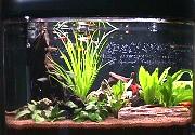 魚の引越しをした.昨日、水槽の掃除をしておいた. 当分の間掃除をしていなかったので汚れや藻で大変なことになっていたのだ.(魚にはこの方が環境がよかったりするかも) 砂を入れ替え、水草も新しくした. 水が出来るまで(砂は調整剤等が配合されたものなのですぐでもOKみたいだが、念のため、一晩放置した)魚たちはバケツ暮らしであったが、今日、水槽に戻したのだ. あとは、夏の高温対策を考える必要がある.(今年は冷却プラントを設置してみる予定である) |