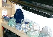 事務所、バイク.例の石のゾーン、少し仲間が増えた...青瑪瑙やフローライト等、青系のを増やす. |