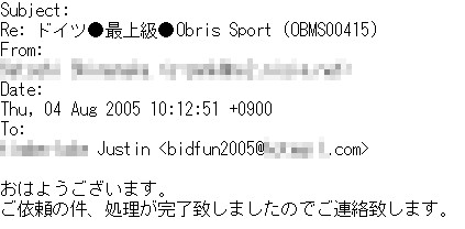 ここでも疑問はあるが、オークションのルールに従い、落札者はその責務を果たさねばならない、入金し、メールを送った.